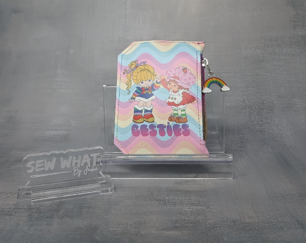 Cardholder and change pocket wallet featuring Rainbow Brite and Strawberry Shortcake.