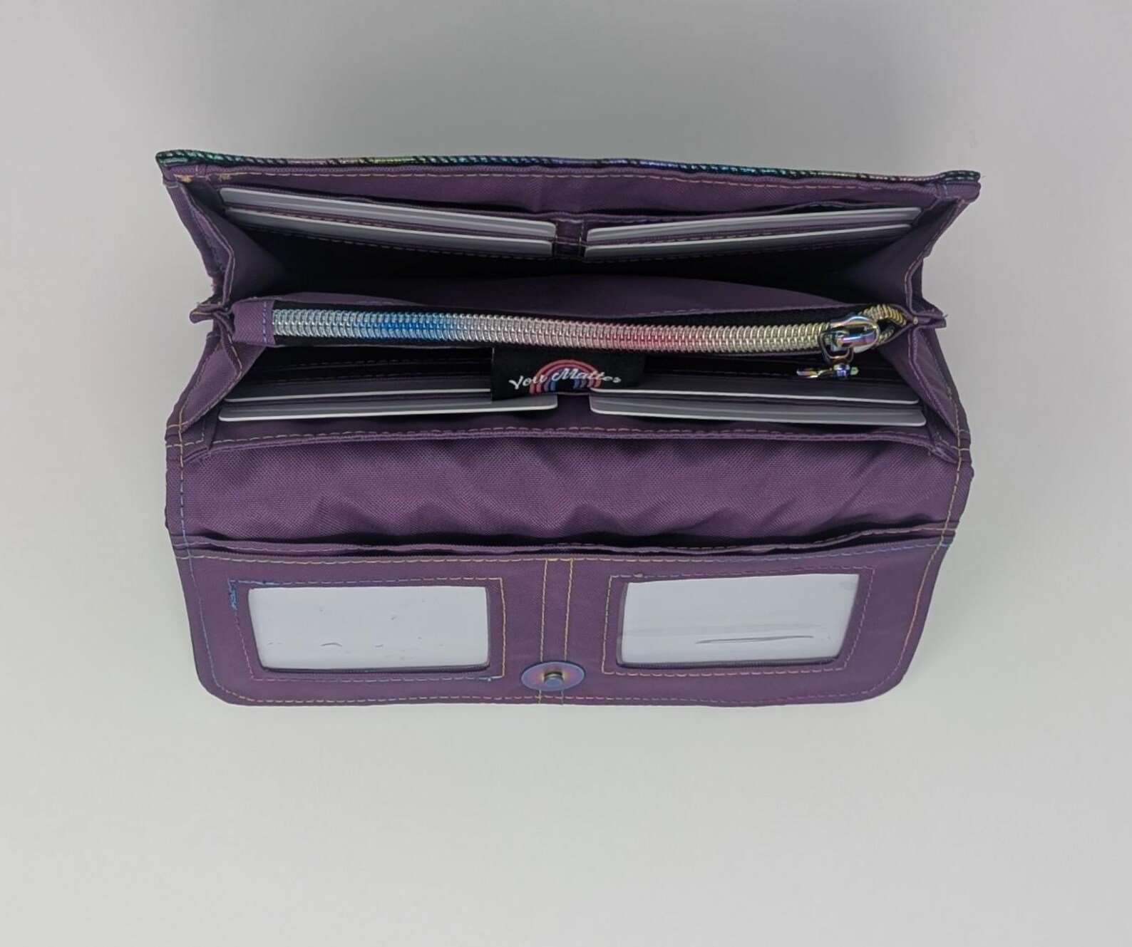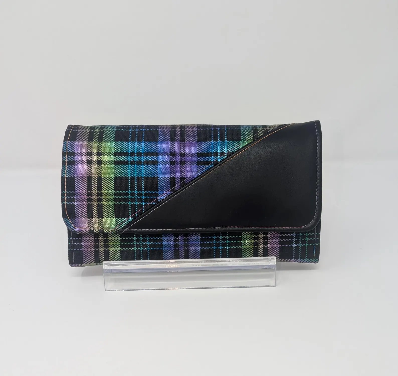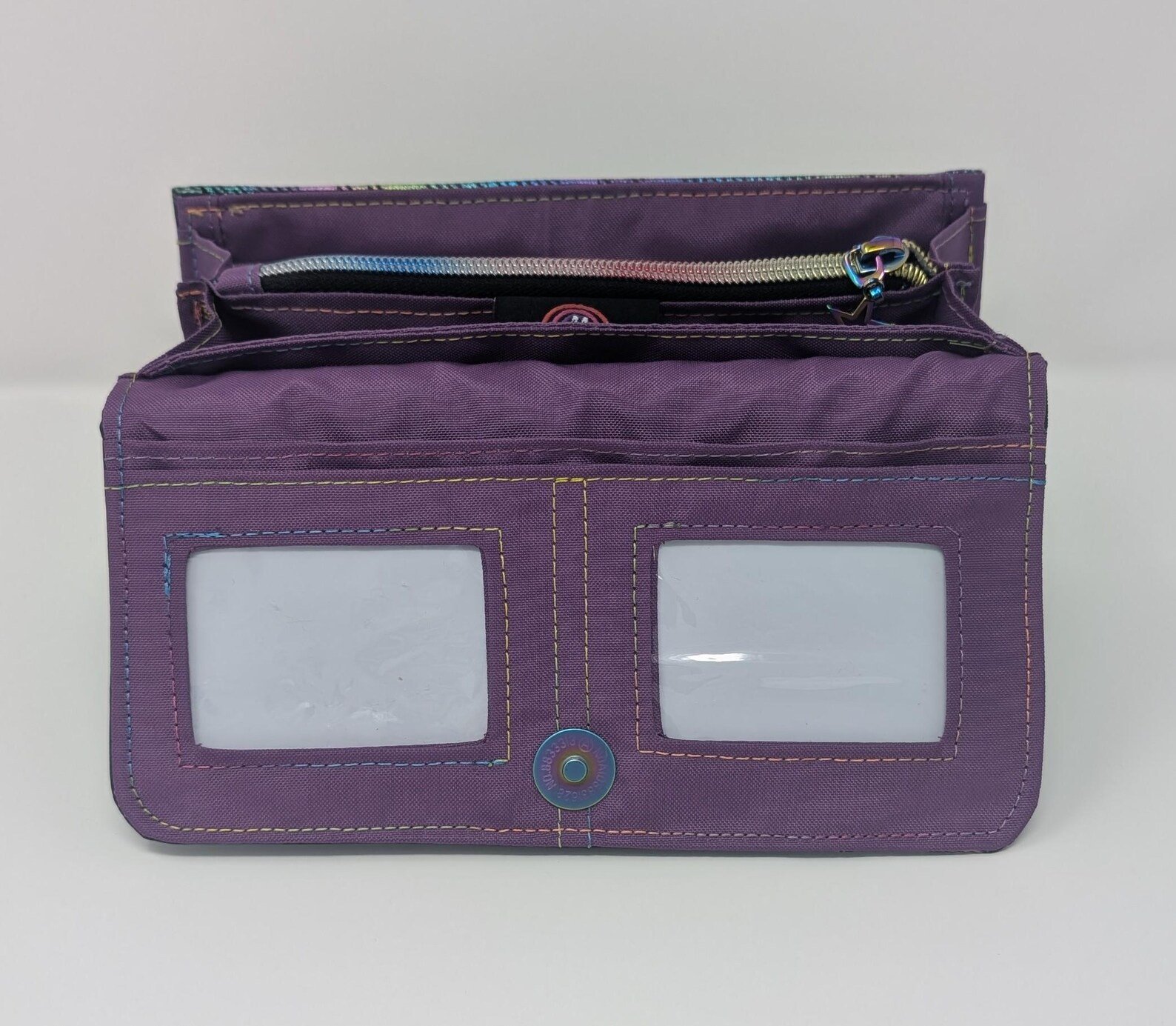 Handmade Black Rainbow Vinyl Clutch Wallet, Purple Interior